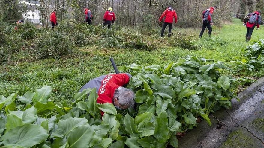 Buzos y agentes provistos de material de protección inspeccionan las zonas de rocas en las que sospechan que los dos acusados por este crimen, una pareja arrestada la semana pasada y que se encuentra en prisión desde el viernes, pudieron deshacerse de objetos que les podrían vincular con el acuchillamiento mortal de Pujana, con la que ambos convivían en un apartamento de una casa rural de Aizarnazabal.