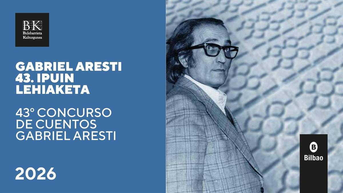 Bilboko Udalak antolatzen duen Gabriel Aresti ipuin lehiaketaren 43. ediziora lanak aurkezteko epea ostegunean irekiko da, urtarrilaren 15ean, eta martxoaren 30ean bukatuko da. Euskarazko eta gaztelaniazko kategoriak izango dira, biak ere 3.500na euroko sariarekin eta 1.750na euroko bi accesitekin, ondoren lanak argitaratzeaz gain.