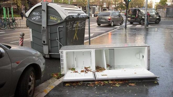 EN ALERTA NARANJA. Ramas caídas y contenedores caídos son algunas de las consecuencias que a lo largo de la ayer se vieron en diferentes partes de la capital alavesa, como consecuencia de los fuertes vientos que azotaron el territorio. El Departamento vasco de Seguridad, con el objeto de prevenir a la ciudadanía de este temporal, ya había activado una alerta naranja, que estará vigente hasta hoy, fruto de las fuertes rachas de viento de componente sur, como los 110 km/h, que se alcanzaron en Zaldiaran, y que también dejaron lluvia en zonas de interior.