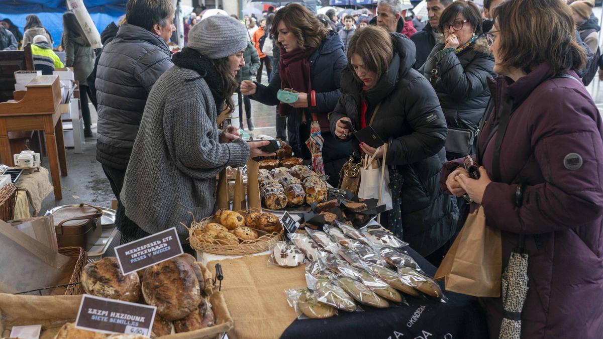 No en vano, se trata de un mercado invernal y, por ello, el grueso del programa se instala bajo la cubierta de la Plaza Aldai. Allí se encontraban, como cada año, desde los miembros de la Academia del cerdo Txarriduna de Bilbao, que se encarga desde hace más de dos décadas de puntuar el concurso gastronómico de txarripatas o manos de cerdo en salsa vizcaína; pasando por la no menos tradicional elaboración casera de morcillas y la imprescindible txosna para llevarse un buen talo al estómago, mientras grupos vocales como Los Arlotes o albokaris de la asociación de instrumentos autóctonos FiTaFik animaban un recinto, salpicado aquí y allá de maestros artesanos de la madera, la cerámica o cuernos y varas, que enseñaban al público su oficio.