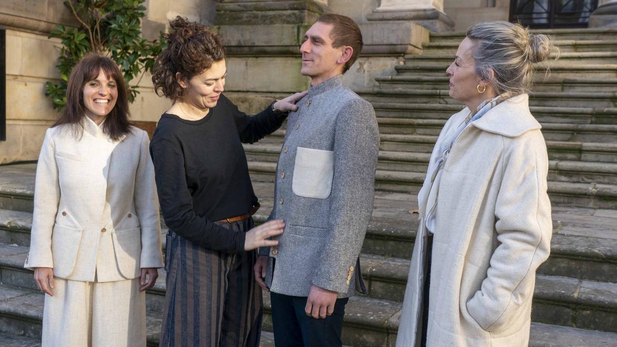 Junto a Noemí Aguirre, diputada foral de Agricultura y a los miembros de la selección Janire Artabe y Joseba Attard, la artista ha subrayado la complejidad del proceso: “Romper mentalidades ha sido una parte muy importante”. Y, es que, han reivindicado que el mito de que “la lana latxa no sirve” debe acabar ya. Creaciones como estas, admite la artista, deben poner su granito de arena en ese sentido.