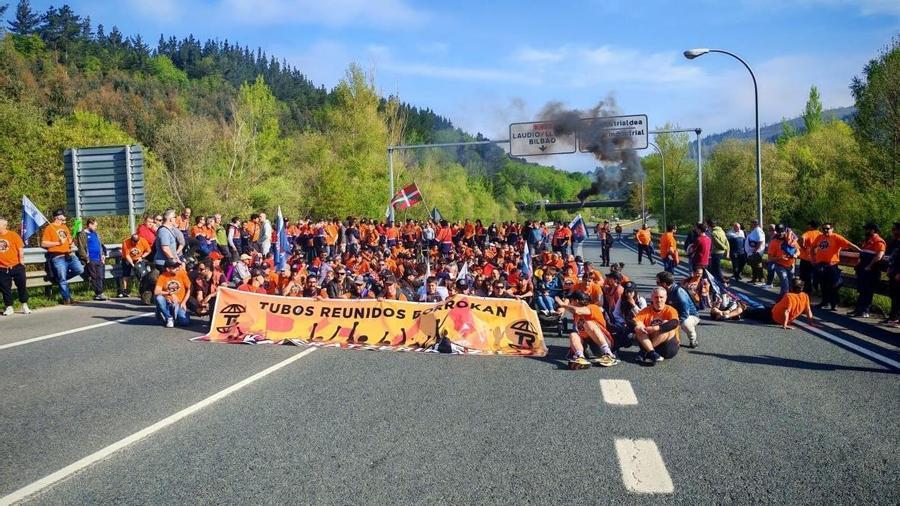 Trabajadores de Tubos Reunidos han cortado esta mañana la carretera de Amurrio a Llodio, en protesta por el expediente de regulación de empleo (ERE) que prevé 242 salidas.