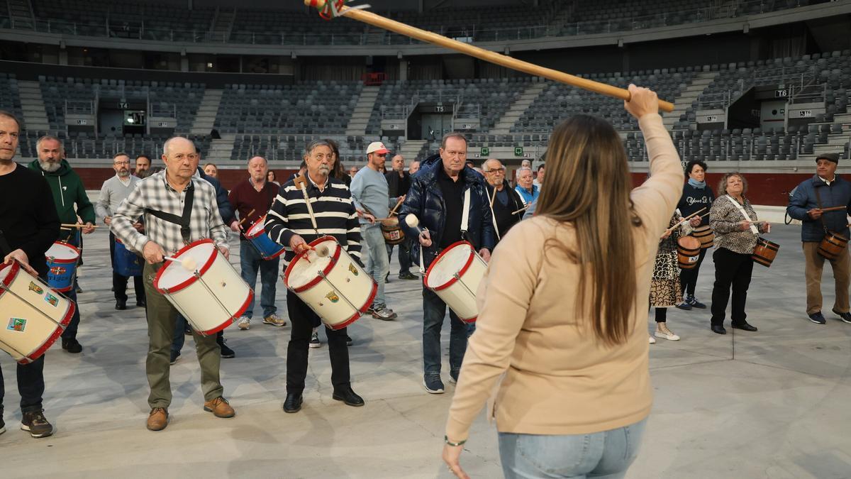 Así, mientras a las 19.30 horas arrancaban los ensayos infantiles, donde decenas de niños y niñas dan sus primeros pasos —o redobles— en la tradición, una hora más tarde era el turno de los más mayores; muchos de ellos veteranos que repiten año tras año, pero también caras nuevas que se suman con curiosidad y ganas a esta noble tradición que tiene lugar en la víspera de la festividad, el 27 de abril. Hasta entonces, las cuadrillas afinan movimientos, coordinan tiempos y trabajan la puesta en escena con una precisión casi matemática que luego se replica por las calles de la capital en tan solemne día al caer la tarde.