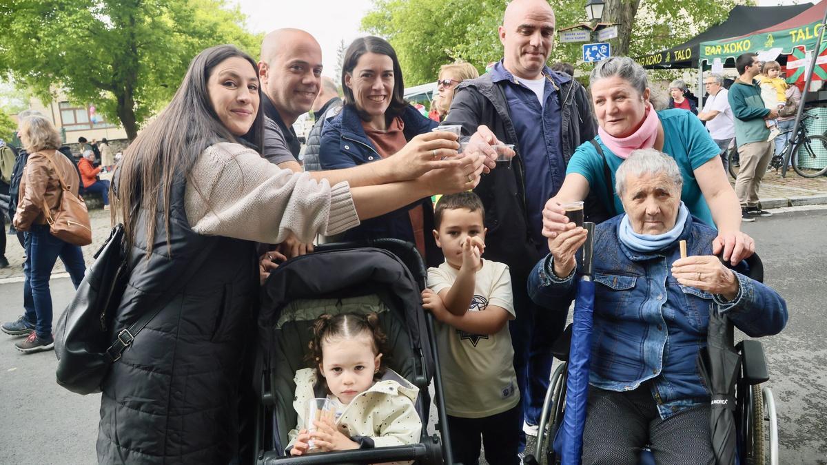 Fuera, a la par que discurre la procesión, comienza a extenderse el rico olor a txistorra, panceta y talo de los puestos cercanos; corre la sidra y el txakoli por las barras de las txosnas y se empiezan a descorchar las primeras botellas de tinto y blanco de Rioja Alavesa, paso obligado para romper la habitual tranquilidad de los 310 vecinos del pueblo que, más allá de la masiva subida a las campas de los vitorianos, también celebran sus fiestas con comida popular, campeonato de mus, teatro infantil, paseos a caballo, concurso de tortilla de patata y bailables, entre otras propuestas.