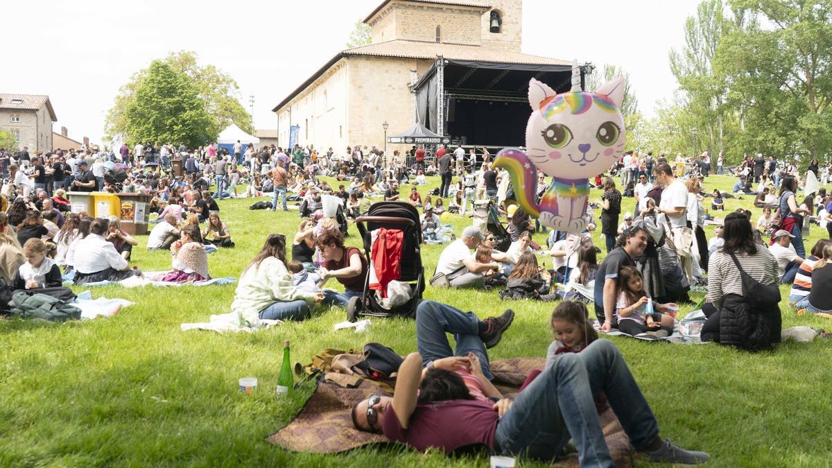“Nos suele gustar venir a ver un poco el ambiente y estar en la campa. Ahora tenemos a la cría, ya con dos años, y aún y todo hemos venido con ella todos los años, para intentar inculcarle un poco también esta tradición que tenemos los alaveses”, remarcaba esta familia gasteiztarra, bien equipada con una gran manta de picnic para sentarse cómodamente sobre el césped, liso como un tapete de cartas.