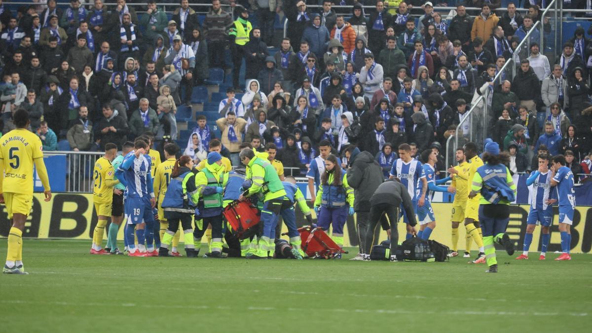 El duelo entre el Deportivo Alavés y el Villarreal tuvo que detenerse durante 10 minutos debido al fuerte golpe que recibió Antonio Sivera en el rostro en una disputa con Ayoze que acabó propiciando la expulsión del guardameta babazorro tras su revisión en el VAR.