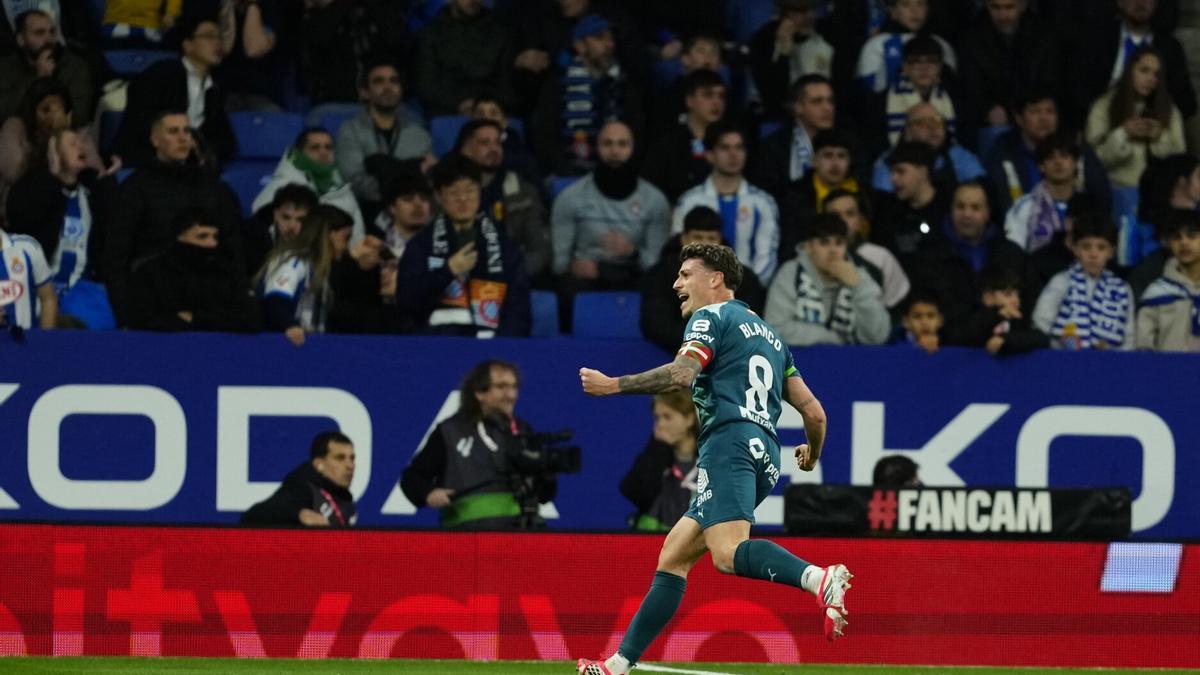 Antonio Blanco ha marcado este viernes en el RCDE Stadium su primer gol desde que viste los colores del Deportivo Alavés, equipo al que llegó en el mercado invernal de la temporada 2022-23.