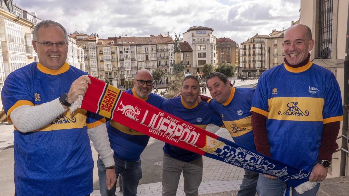 Era la primera vez que los seguidores del Liverpool salían de su país en masa, tras la tragedia de Heysel. “Íbamos con respeto y miedo a la vez y cuando empezaron a cantar el You never walk alone se me puso la piel de gallina”, cuenta Rafa, quien desde aquel día se hizo fan del cuadro red. Pese a que los británicos eran mayoría, la grada vitoriana se dejó sentir durante muchos momentos de la final y no sólo con los goles de Javi Moreno, Iván Alonso o Jordi Cruyff. “Los cuatro blusas que fuimos allí callamos a las otras tres gradas casi todo el partido. Se miraban como diciendo que no parábamos de animar, fue alucinante”, ensalza Gorka, mientras que Mikel recuerda que “nosotros no éramos nadie en Europa, más bien un pueblo. Y nunca habíamos salido tantos seguidores”.