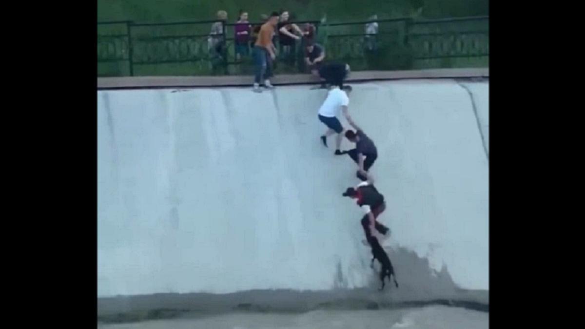 Ahí entra en escena lo que convirtió la historia en viral: varias personas que estaban en la zona, sin conocerse entre sí, reaccionaron formando una cadena humana para intentar sacarlos de ahí. Una decisión rápida, casi instintiva, que terminó bien, porque rescataron con vida y sin ningún daño tanto al joven como al perro. Y como alguien lo grabó con su teléfono móvil y lo subió a las redes sociales, pronto se viralizó y dio la vuelta al mundo como ejemplo de solidaridad espontánea.