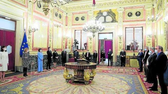 Los nuevos cargos juraron en el salón de Pasos Perdidos del Congreso de los Diputados en un acto al que acudió la portavoz del Gobierno y ministra de Hacienda, María Jesús Montero, y que estuvo presidido por las presidentas del Congreso y del Senado, Meritxell Batet y Pilar Llop, respectivamente.