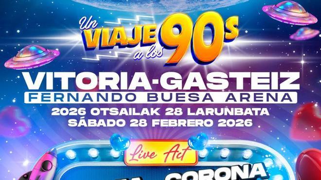 El Buesa Arena vuelve a dejar a un lado este fin de semana su función como casa del Baskonia para dejarse llevar por la música. En concreto, este sábado a partir de las seis de la tarde llegará al espacio de la capital alavesa la gira del espectáculo Un viaje a los 90s.