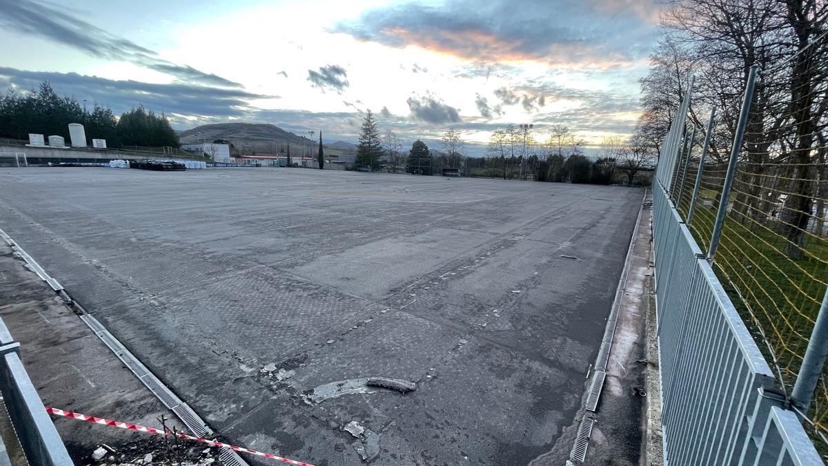 Las obras de renovación e instalación del nuevo césped artificial en el campo 3 de Olaranbe han comenzado con la retirada de la antigua superficie de juego.