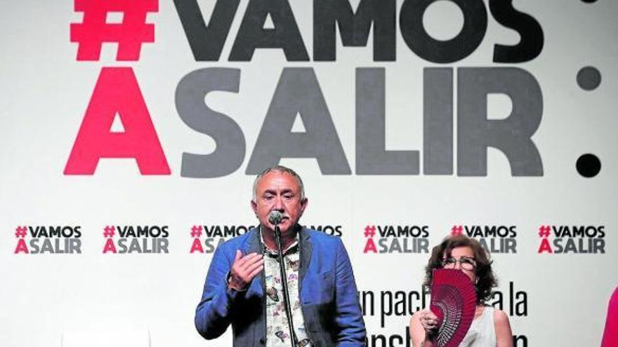 Los secretarios generales de CCOO y UGT, Unai Sordo y Pepe Álvarez (en la imagen), reclamaron ayer, junto a representantes de la cultura, la ciencia o el periodismo, un pacto por la “reconstrucción social” del país para lo que han convocado concentraciones este sábado en más de 50 puntos de todo el Estado con todas las medidas de protección. Álvarez subrayó la importancia de que la sociedad diga cómo quiere reconstruir el país tras la pandemia del coronavirus.