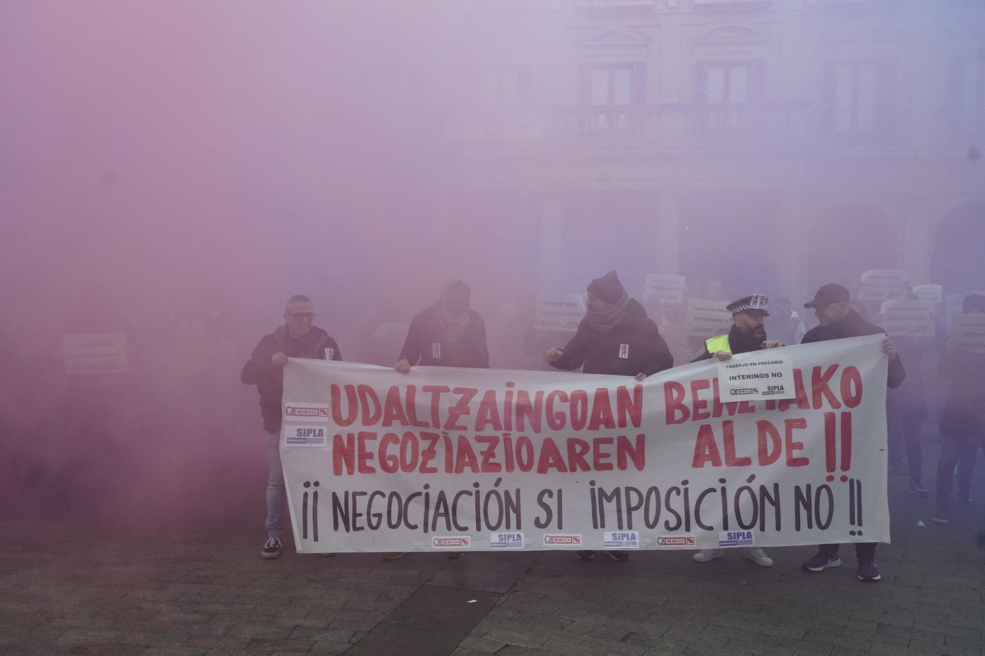 En imágenes: Protesta de la Policía Local frente al Ayuntamiento de Vitoria