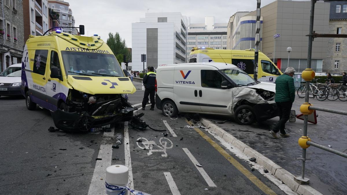 Una fuerte colisión esta mañana de jueves entre una ambulancia y una furgoneta ha provocado grandes retenciones en el cruce entre Los Herrán y la avenida Santiago, a la altura de las urgencias del hospital Santiago Apóstol.