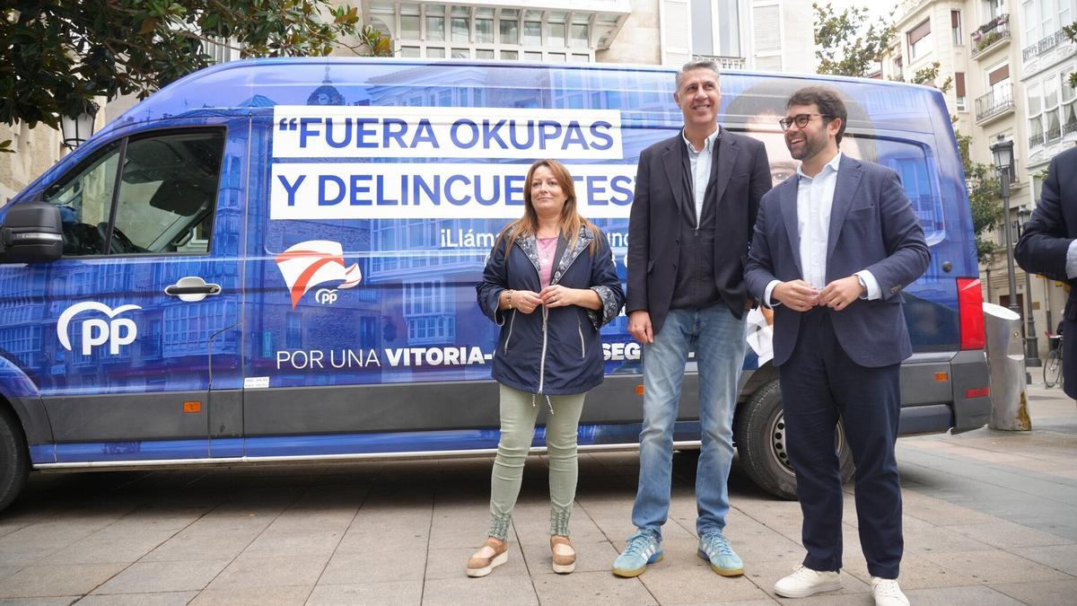 Xavier García Albiol ha visitado la capital alavesa para respaldar la campaña del PP de Vitoria, 'Fuera okupas y delincuentes', acompañado por el portavoz municipal, Iñaki García Calvo. El alcalde de Badalona ha afirmado que, "debido a la gestión del Gobierno del PSOE, España se ha convertido en el paraíso europeo de la ocupación ilegal”.