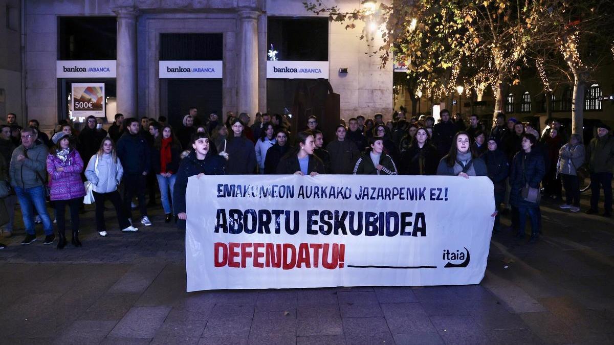 Gasteizko Itaia se movilizó en la tarde del viernes en la plaza de los Celedones de Oro tras la absolución de los 21 antiabortistas que se concentraban frente a la Clínica Askabide de Gasteiz. La organización feminista denunció que aquellas concentraciones tenían como objetivo criminalizar a las mujeres y al personal sanitario, y advirtió de que la última sentencia sienta un precedente peligroso, al facilitar que este tipo de protestas contra el aborto puedan llevarse a cabo con total impunidad.