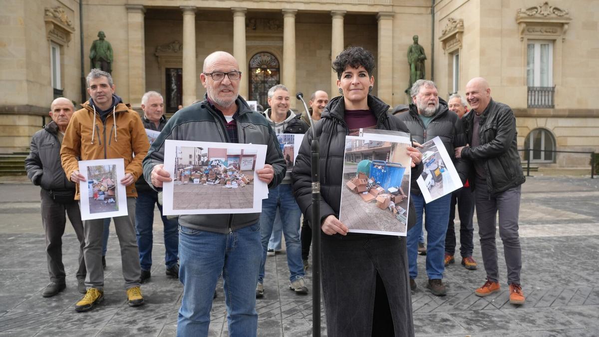Representantes de los ayuntamientos de los pueblos de Álava y sus Cuadrillas han comparecido esta mañana en la Plaza de la Provincia para denunciar públicamente la situación del servicio de recogida de papel y cartón en el Territorio Histórico de Araba. Joseba Koldo Garitagoitia, alcalde de Dulantzi, y Erika Letamendi, alcaldesa del Ayuntamiento de San Millán/Donemiliaga, han leído un comunicado conjunto en castellano y euskera en nombre de numerosos municipios, entre ellos Laudio, Dulantzi, Oion, San Millán, Urkabustaiz, Kanpezu y Artziniega, que expresan su preocupación compartida ante el deterioro de este servicio de competencia foral.