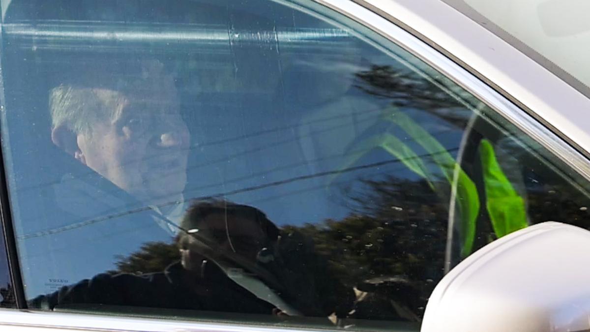 El rey emérito, que vestía cazadora náutica y pantalón azul marino, ha viajado en el asiento del copiloto y ha saludado a los gráficos que le esperaban a la salida del recinto aeroportuario.
