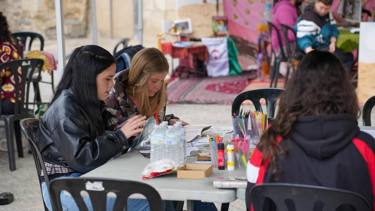“Coged el vaso. Os voy a dar un poco de té saharaui. El primero es amargo como la vida, el segundo es dulce como el amor y el tercero es suave como la muerte. Con este, lo que he hecho es hacer una mezcla”, explicaba este sábado en el Machete Mutse, de Desertia Elkartea, que promueve el talento, arte y emprendimiento saharui a todas las personas que se animaban a entrar en su jaima. Bajo ella, se hacía uno de los talleres de la segunda edición de Gazte Plaza, que reúne a jóvenes artistas locales para mostrar su talento y creatividad ,con más de veinte propuestas culturales gratuitas en el Casco Viejo.