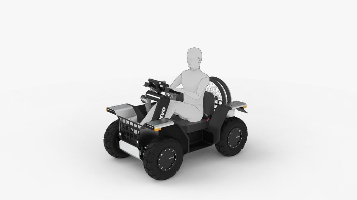 El UPT se concibió como una especie de ‘herramienta de movilidad’ más que como un simple vehículo recreativo. Si se observa su estructura recuerda a la de un pequeño chasis tubular sobre el que se monta un sistema de suspensión completo, ruedas con mucho ‘balón’ (mucha goma y poca llanta) y un motor eléctrico capaz de moverlo con soltura incluso en terrenos irregulares. No es casualidad que ENVO lo presente como un transporte apto tanto para la ciudad como para caminos rurales, zonas de trabajo o incluso actividades al aire libre. La idea es que pueda servir para desplazamientos diarios, para transportar pequeñas cargas o para convertirse en una buena solución para tareas profesionales donde se necesite un vehículo compacto y eléctrico.