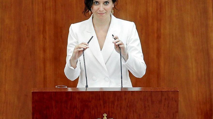 - Isabel Díaz Ayuso puso sobre la mesa sus líneas programáticas para los dos años de legislatura en la primera jornada de su investidura ayer en la Asamblea de Madrid, donde desgranó un proyecto de Gobierno abstracto e impreciso con el que prometió cheques por doquier y ayudas sociales, a la par que una nueva reducción de impuestos: “La mayor bajada de la historia”.