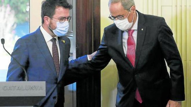 Acompañado por Pere Aragonès durante la recepción institucional con la que quiso homenajearlo la presidenta del Parlament, Laura Borràs, el día en que se cumplía un año de su inhabilitación; el expresident Quim Torra apremió ayer a ERC, JxCat y la CUP a definir cuanto antes un plan para materializar la independencia: “No tenemos tiempo que perder”. “Este Parlament le votó para que fuese el presidente de la restitución y, para vergüenza nuestra, fue el de la destitución”, lamentó Borràs.