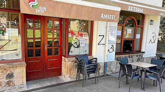 Cinco batzokis del PNV en la comarca de Enkarterri amanecieron ayer con pintadas prorrusas con el símbolo de la hoz y el martillo y la Z que lucen las tropas rusas que combaten en Ucrania.
