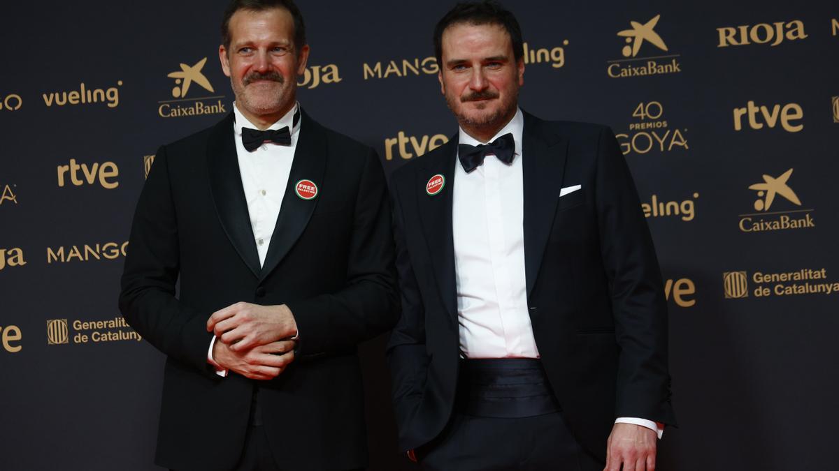 Presentadores e integrantes de varios equipos de cintas nominadas en la 40 edición de la gala de los Goya han desfilado por la alfombra roja luciendo en la solapa un elemento común: la chapa con el símbolo de la sandía y el lema 'FREE PALESTINE'.