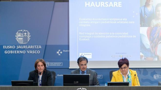 Gaur goizean egin den ekimenaren aurkezpenean, Alberto Martínez Osasuneko sailburuarekin batera izan dira Lore Bilbao Osakidetzako zuzendari nagusia eta Iratxe Salcedo Osakidetzako Pediatriako arduraduna.