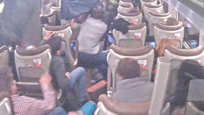 El informe añade las imágenes de los vagones del tren Iryo en el momento en el que se produjo el descarrilamiento y antes del impacto con el convoy de Alvia que circulaba en sentido contrario. En las imágenes se perciben fuertes movimientos de los vagones que zarandean a los pasajeros, que se agarran con fuerza para no caerse.